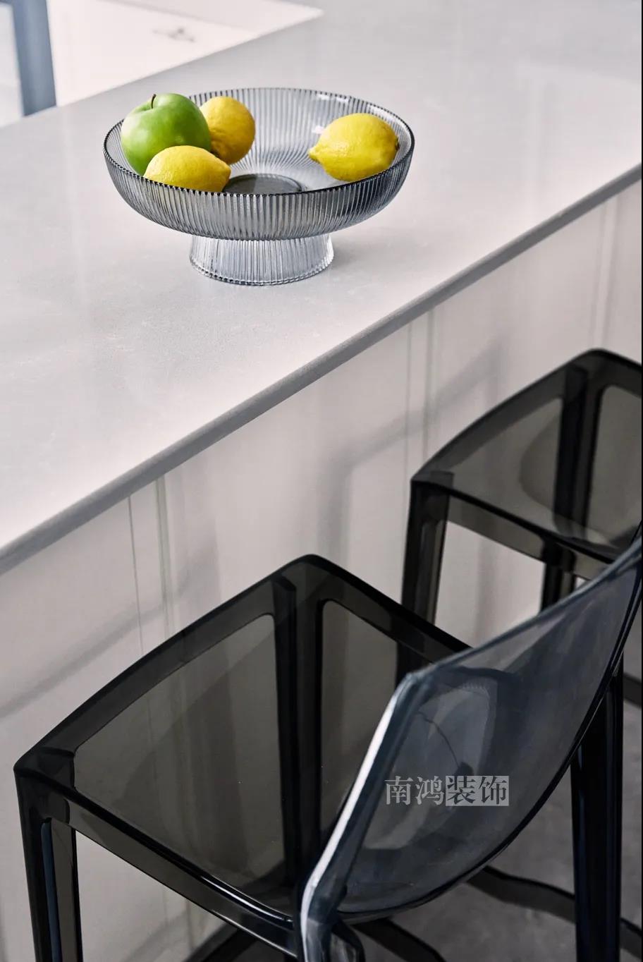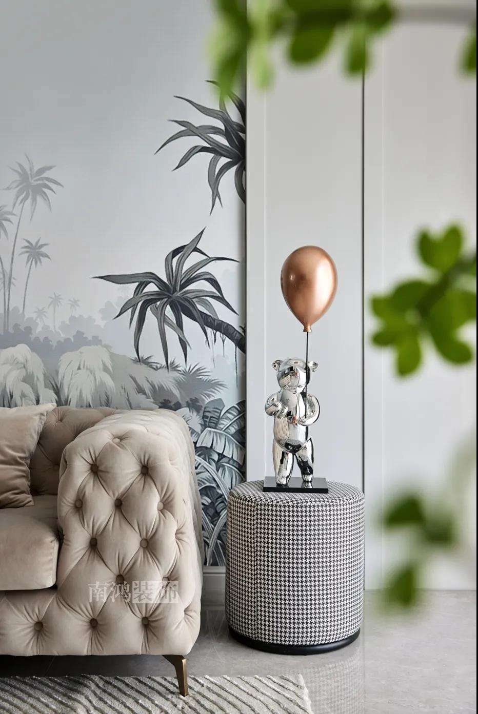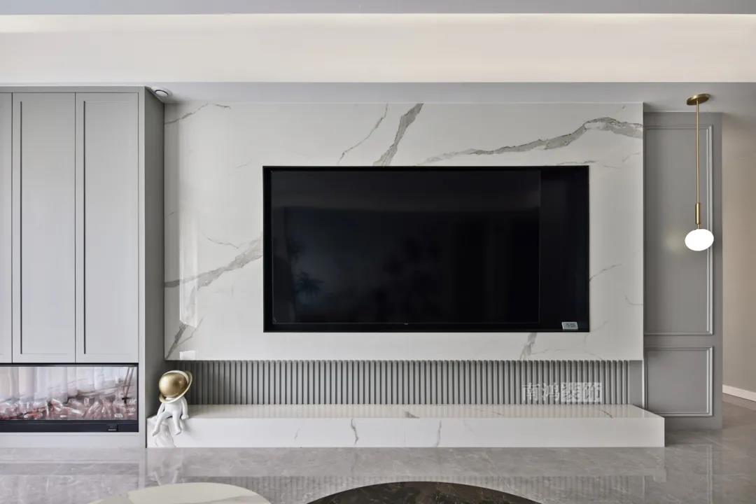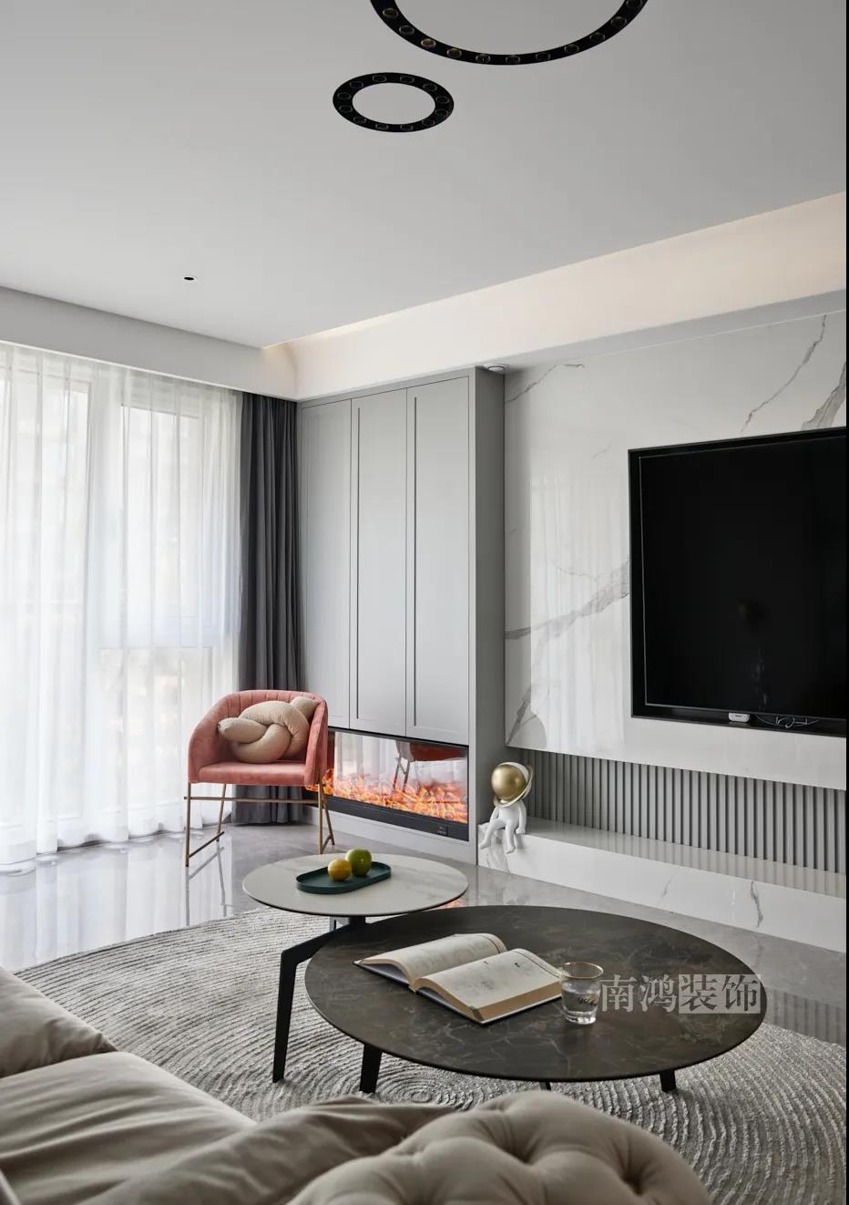 01. 客戶需求 本案的屋主非常喜歡小美式風(fēng)格的清新自在,又向往著現(xiàn)代簡約所傳達(dá)的生活理念,所以設(shè)計(jì)師依照他的喜好,將兩種風(fēng)格元素巧妙糅合,讓整體空間在浪漫優(yōu)雅的情調(diào)中傳遞出主人的獨(dú)特品味。 02. 裝飾亮點(diǎn) REFRESHING 擯棄了粗暴的材質(zhì)堆砌,將小美式與現(xiàn)代簡約巧妙結(jié)合在一起,色調(diào)上選用低飽和度的高級灰與柔和的莫蘭迪色,致力于呈現(xiàn)一個唯美純粹、具備高級感的美學(xué)空間。 03. 戶型圖 04. 設(shè)計(jì)落地 客 廳 客廳以高級灰為主基調(diào),低飽和度的特性使得它具備很強(qiáng)的包容性。 電視背景將美式的經(jīng)典線條護(hù)墻與利落的大理石磚組合,沙發(fā)背景則做了木護(hù)墻隱形門處理,配以簡單干凈又不減細(xì)節(jié)的吊頂,既實(shí)現(xiàn)了兩種不同風(fēng)格元素的結(jié)合,又能讓造型為居家功能服務(wù)。 靠近陽臺擺放一把亮麗單椅,電子壁爐內(nèi)躍動著溫暖的火苗,成為美妙的休憩一角。 節(jié)制而有意蘊(yùn)的設(shè)計(jì)手法,賦予空間最具詩意的內(nèi)涵表達(dá)。 開放的領(lǐng)域中,客餐之間連貫而又相對獨(dú)立,在敞闊的尺度中讓主人感受到家的舒適。 餐 廳 餐廳,是讓人走近便頓覺眼前一亮的空間所在。花朵般嬌嫩的煙粉色,是莫蘭迪色系中超有存在感的一派,又如晚霞,純凈美好,撲面而來便是夢幻與浪漫的氣息。 餐廳處還添加入西廚的功能,讓廚房實(shí)現(xiàn)多功能化,同時弱化了原區(qū)域的狹長感。 過 道 “人生忽如寄,莫辜負(fù)茶、湯和好天氣。”清朗平和的過道景致,自給人一種寧靜的深邃感受。 臥 室 臥室刪繁就簡,通過淺色的床品與干凈的硬包背景,營造簡約純粹的清韻。 兒童房是一個多姿多彩的空間,活潑的星星圖案,多種低飽和色調(diào)搭建的背景墻面,整體氣氛輕松愉悅,作為一個成長型空間來說也充滿著可塑性。 衣 帽 間 純白的視象,抽離了所有多余的表達(dá),兩側(cè)衣柜默默擔(dān)當(dāng)著收納的使命,井然有序地包容著一切冗雜。