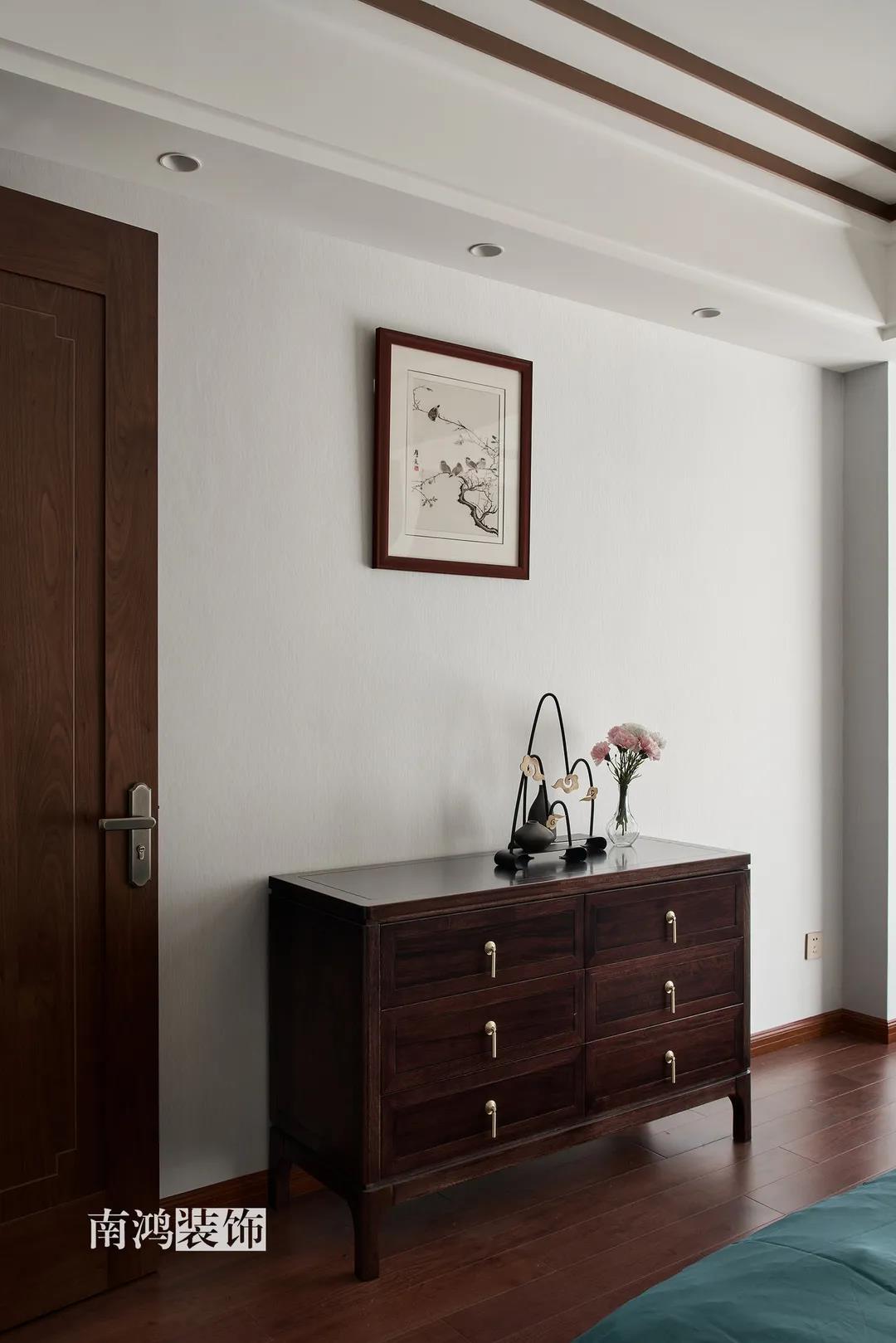 新中式風格是對傳統文化的再設計 亦是對中式風韻的現代化演繹 它將簡約內斂、精致古典的特性融入生活 有條不紊地傳遞著空間力量 01. 玄關 ENTRANCE 入戶玄關開啟了這個家的序章,彰顯著十足的儀式感。墻上開圓洞,能借此窺見到廚房的景象,空氣中也仿佛彌漫出淡淡的菜香,是只屬于家的味道呀。 02. 廚房 KITCHEN 廚房做半開放式,與玄關相連。布局是動線更為簡短的U字型,按“入戶-冰箱-水槽-灶臺”的順序就能高效開始下廚時光。 03. 客廳 LIVING ROOM 溫馨典雅的客廳空間,色彩調配和諧,不寡淡,不張揚,布藝與原木釋放著柔和氣息,一切皆從生活的本質出發,在自然之美中找尋到心靈的歸宿。 個性定制的藝術硬包化作沙發背景墻,盛開的花朵寓意著生活的美好。兩側做鏡面裝飾,既是對吊頂細節的呼應,又在無形中放大了空間。 客廳望向餐廳的角度,從這里可以清楚看到客餐廳與廚房、玄關之間的移門位置,移門一拉,便是兩塊互不打擾的獨立區域。 04. 餐廳 DINING ROOM 經過精心“妝容打扮”的餐廳就像從畫卷中走出的江南美人,優雅動人,秀麗端莊。 瓷盤花藝、畫扇茶器等中式元素,共同構筑起這個清雋和雅的室內場景,使其更為飽滿的同時視覺上也更有層次。 05. 臥室 BEDROOM 主臥納入陽臺以增強整體的空間感與明亮通透度,床尾的斗柜方便小件收納,活潑的藍粉與淡雅的綠形成對照,彰顯獨特個性。 作為休憩的地方,設計師在空間內摒棄多余的裝飾,讓每一件物品都顯得不可或缺。 女兒房結合了鮮亮的明黃與溫柔的香檳色,充滿著活力與希望。 長輩房用色沉穩,并選擇了素雅墻布來營造溫和觀感。 06. 書房 STUDY ROOM 書房,乳白色的漆面結合成品中式家具,主人的所有閑情雅致,都能在這方天地里,怡然自得。 07. 衛生間 BATHROOM 位于三樓的衛生間干區,相鄰樓梯,墻上順勢開洞以增強流動性,也不會顯得壓抑。墻地材質使用一致,保證空間的整體性。 平面戶型圖 -- ·項目信息· 項目名稱:上河宸章 建筑類型:疊排底躍 設計風格:新中式 項目地點:中國·杭州 項目面積:200㎡ 項目服務:設計·施工·硬裝·軟裝 全案設計 設計單位:浙江南鴻裝飾 施工單位:浙江南鴻裝飾
