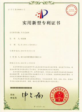 開合式衣柜專利證書