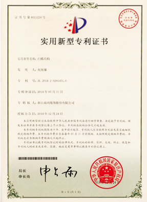 門檻結構專利證書