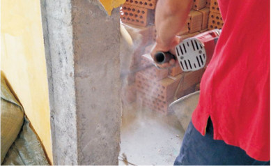 灑水濕潤后線槽修補有利于砂漿的粘合度