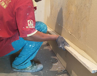 貼地腳線部位膩子需批刮到底且用靠尺拉直